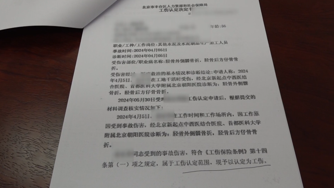 袁先生的家并不在北京,出院后只能住在工地上的工棚里,因为公司却迟迟没有给他一个说法,这算不算工伤?或者怎么赔偿?无奈之下,袁先生自行申请工伤认定,8月26日,劳动仲裁作出裁决,袁先生的伤情被鉴定为职工工伤与职业病致残等级十级。