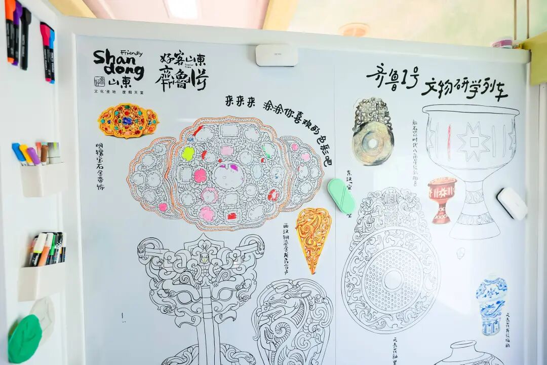 列车上,仅需2.9元即可获得DIY大冰箱贴,小朋友们可以自己在列车上寻找喜欢的文物模型,制作专属冰箱贴,获得独家研学记忆。