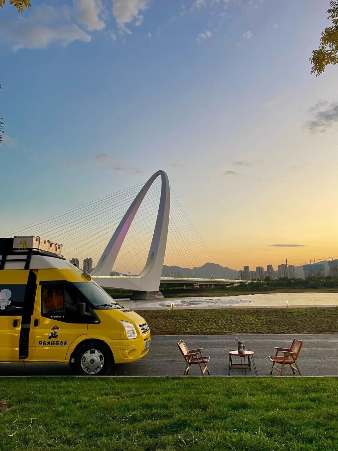 六点前后,天变粉紫,西山成剪影,河面反光。这时候,值得等。