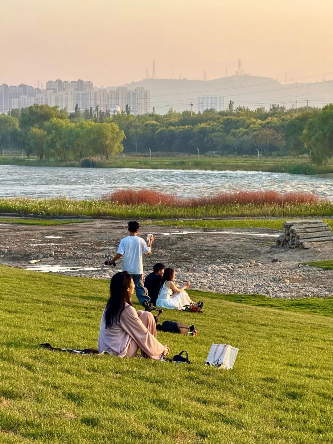 四月是这里适合游览的时段。河边植被初绿,下午光线从西边照来,傍晚可观赏西山落日。