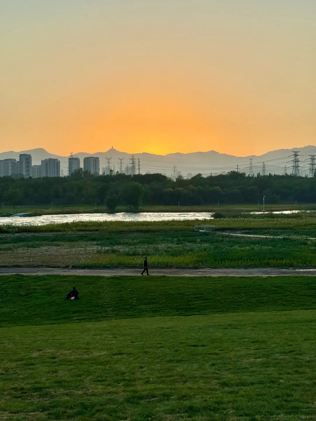 愿意的话,可以多留一会儿。等天完全黑了,对岸灯火亮了,西山只剩个影子。这时候往回走,穿过首钢大桥,回城里去。这一天,结束了。