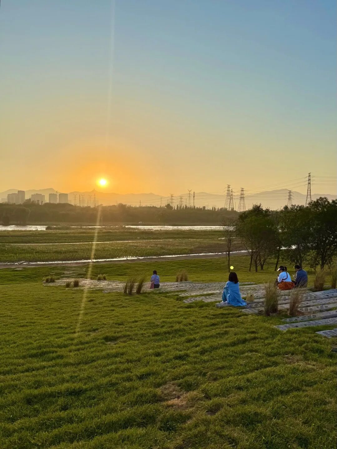 沿着滨水步道走一走,看西山从淡蓝变成橙红。这是属于永定河集的春天。