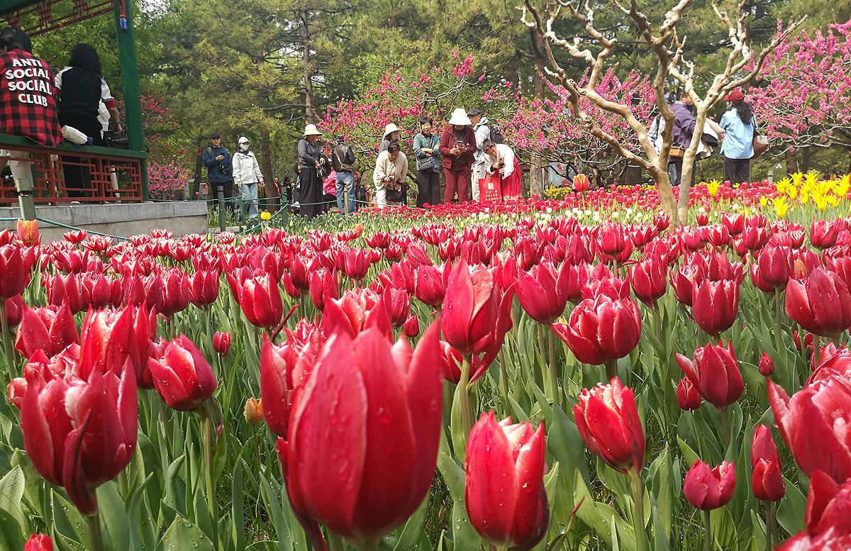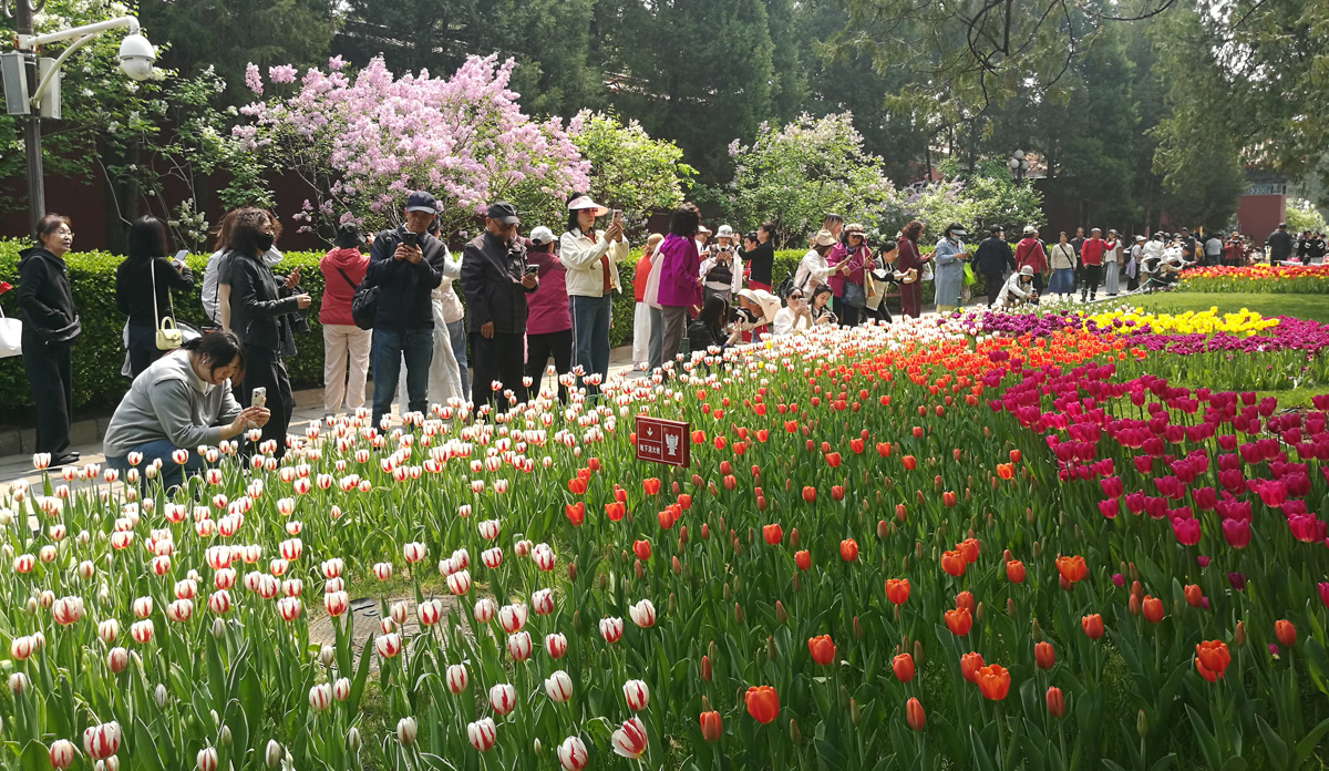 四月的京城,春光明媚。随着气温稳步回升,中山公园一年一度的郁金香花展已进入最佳观赏期。红墙黄瓦之下,一片片绚丽的“花海”正吸引着大批市民与游客前来打卡。