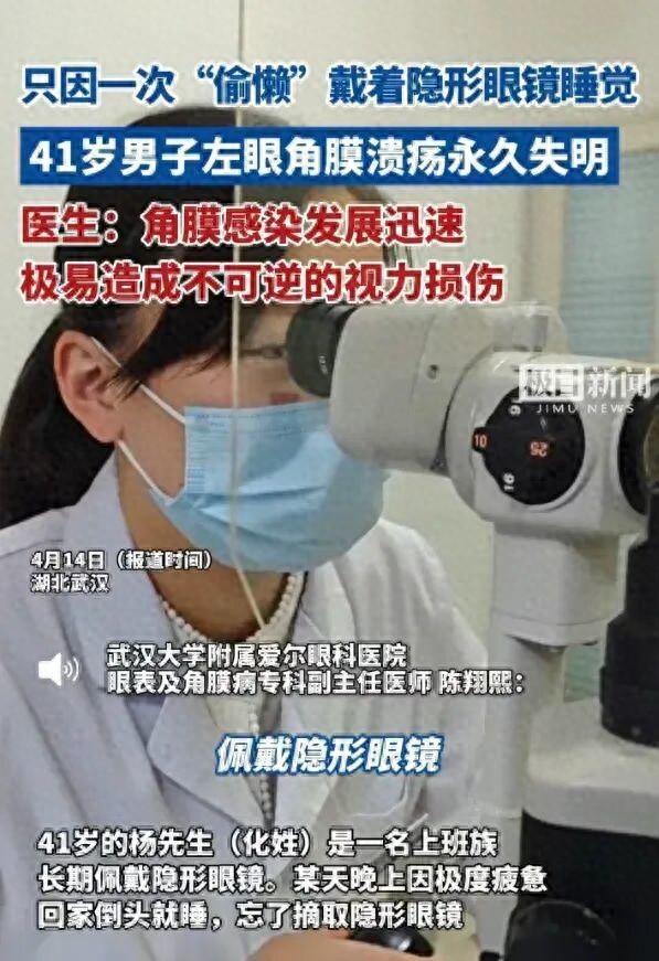 记者了解到,杨先生是一名普通的上班族,长期佩戴隐形眼镜。前段时间,他因工作繁忙,身体极度疲惫,某天晚上回家倒头就睡,竟忘了摘取隐形眼镜。