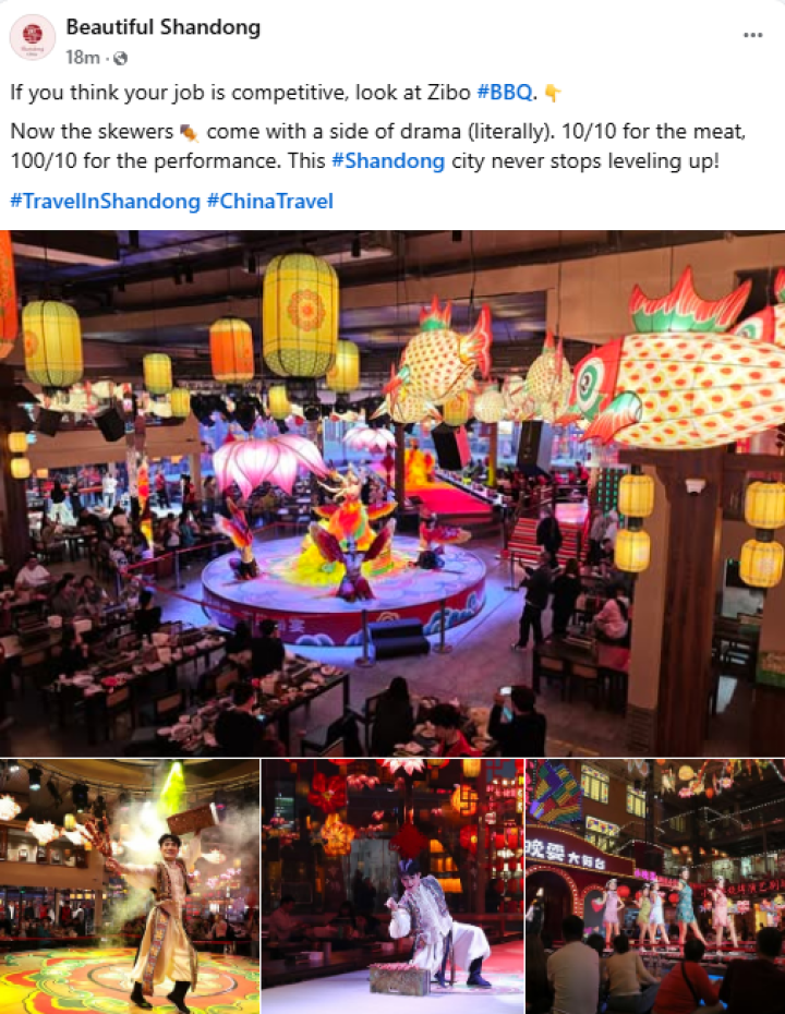 “3年后再访八大局便民市场,淄博为了‘接得住’流量做了各种努力,如今的阿淄烧烤、小晚耍等店铺不仅餐品上新,演艺项目也多了起来。”采风团成员邵凯说,如今的八大局便民市场依然是游客体验淄博“烟火人间”的主要入口。阿淄烧烤店负责人郑峰介绍,店里以“齐文化”为核心,以“餐饮盛宴+沉浸式剧场”的方式串联起姜子牙、聊斋等故事,让游客在“烟火味道”中领略淄博悠久的历史文化。