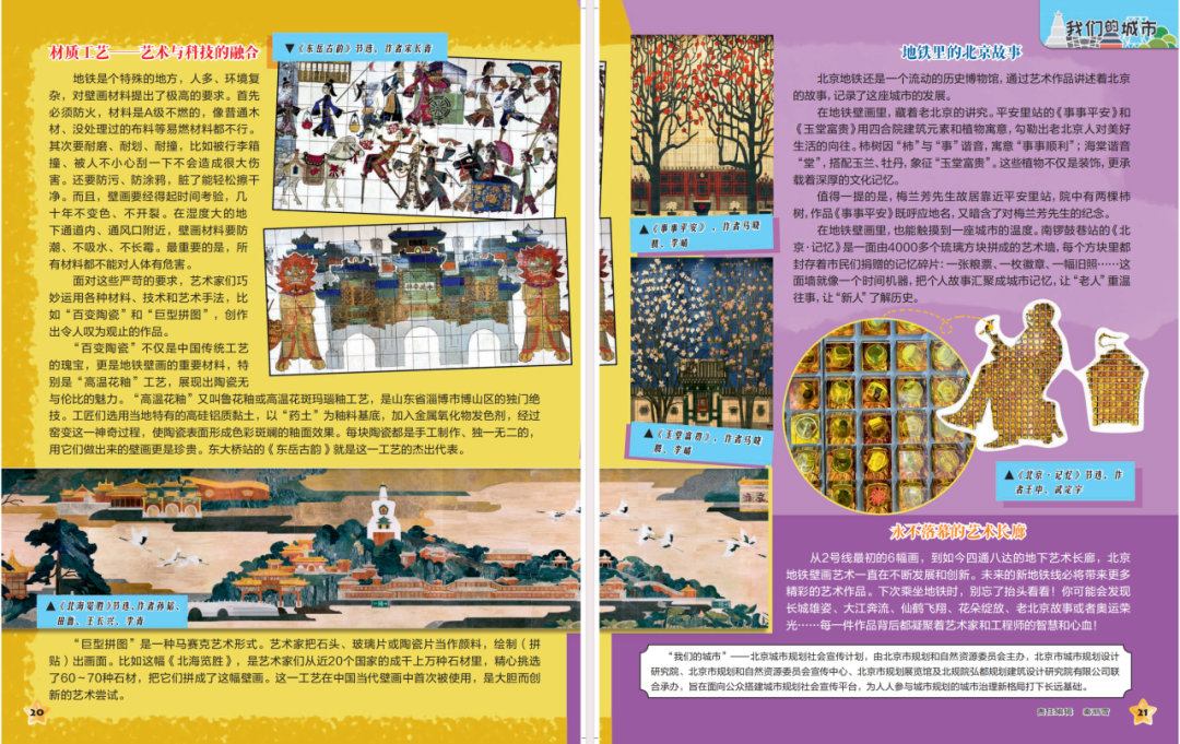 在纵横交错的站厅和通道里,壁画像一页页翻开的画册,里面装着创作故事和文化记忆。从最初的几幅作品起步,借着奥运等重要节点,公共艺术越来越丰富:不只在墙上,也可能变成立体的小景或互动的装置,让通勤路多了一点惊喜。为了让这种惊喜持续下去,设计还得很“讲究”:既要安全可靠,又要经得起日常使用和地下环境的考验。