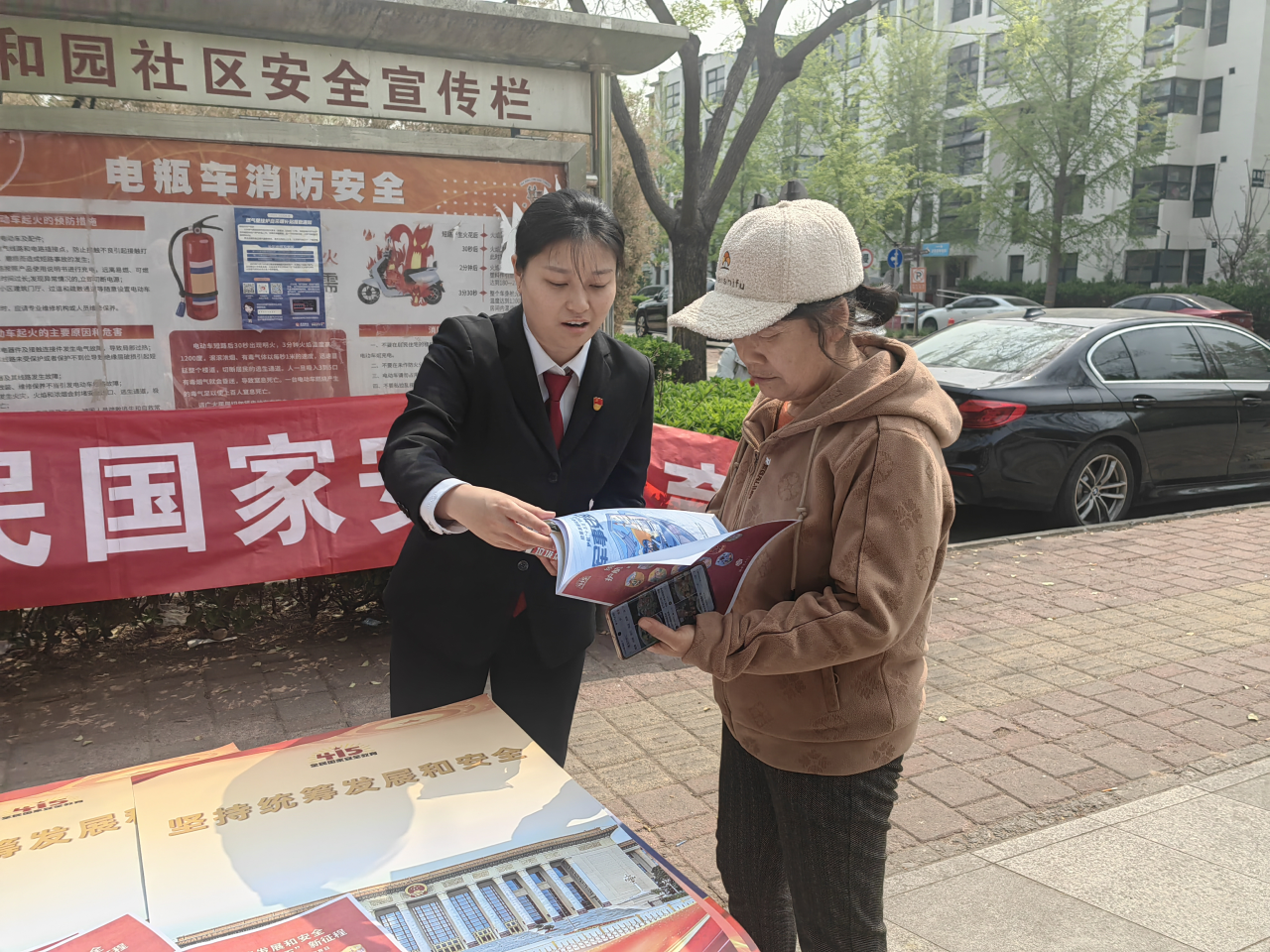 除此之外,康和园社区联合大兴法院开展了国家安全宣传活动。活动现场,法官们通过悬挂宣传横幅、设置咨询台、发放宣传资料等方式,向社区居民普及国家安全相关法律法规和知识。