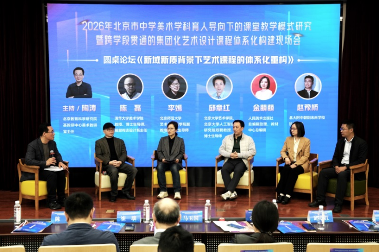 近日,“2026年北京市中学美术学科育人导向下的课堂教学模式研究暨跨学段贯通的集团化艺术设计课程体系化构建现场会”在北京大学附属中学举行。来自清华大学、北京大学、北京师范大学以及人民美术出版社的专家学者、一线教师及教研员齐聚一堂,围绕“跨学段贯通、跨学科融通、跨地域联通”的美育实践路径展开深入研讨,展现了在“新域新质”背景下的美育创新探索。
