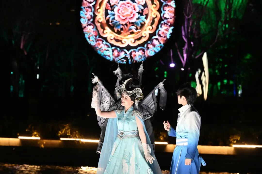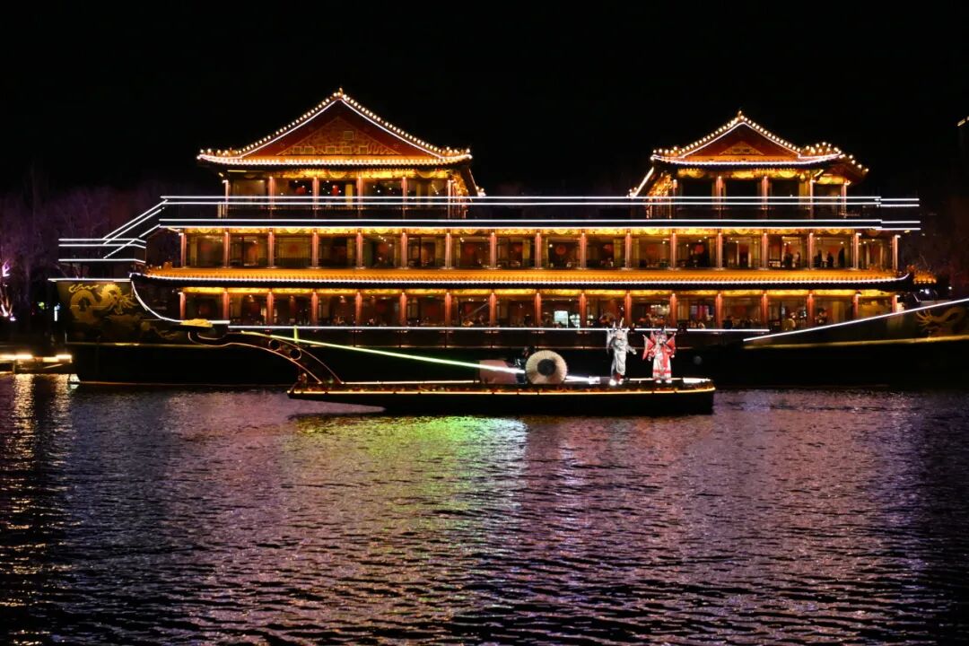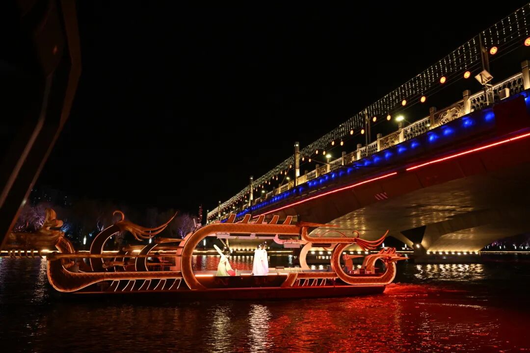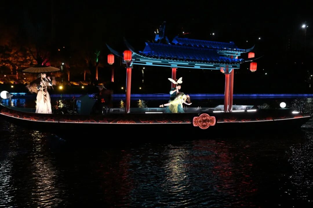 “在‘运上行’的展演空间里,文化不是陈列在橱窗里的标本,而是可感知、可共鸣的生活与情感。诗词歌赋与水岸意境相融,京韵非遗与水波光影相伴,轻舟之上演员抚琴吟唱,桥体之间光影流转成诗,南北风物、文脉江山在一水之间交融共生。”主创团队音乐总监江辰曦介绍。