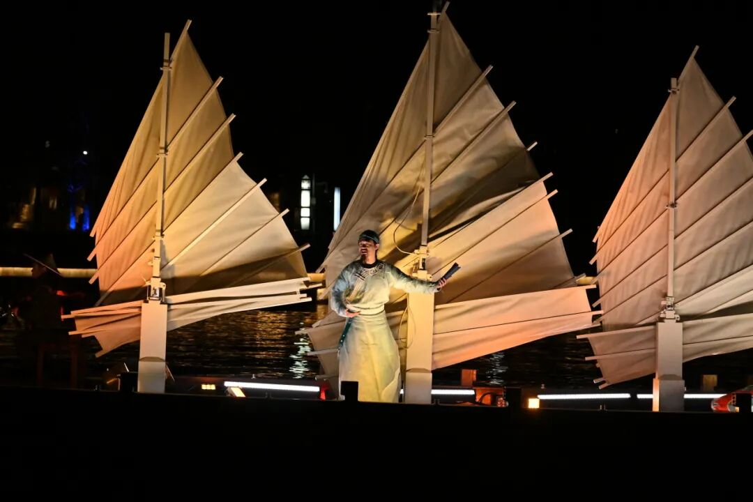 “我们不想做一场单纯的视觉秀,而是要做一部有根、有魂、有人、有故事的运河诗乐。”主创团队导演刘洲铭坦言,创作的初心,是让每一位观众乘船而行,都能遇见运河的历史,触摸运河的温度,读懂运河的精神。为此,“运上行”摒弃传统表演的固定舞台与线性叙事,以“六运”为脉络,将开运、修运、漕运、文脉、转运、新运的千年历程,藏进3.5公里的水岸之间。船行一处,景换一幕,故事便展开一段,没有生硬的讲解,没有刻意的煽情,一切都在水波光影间自然流淌。