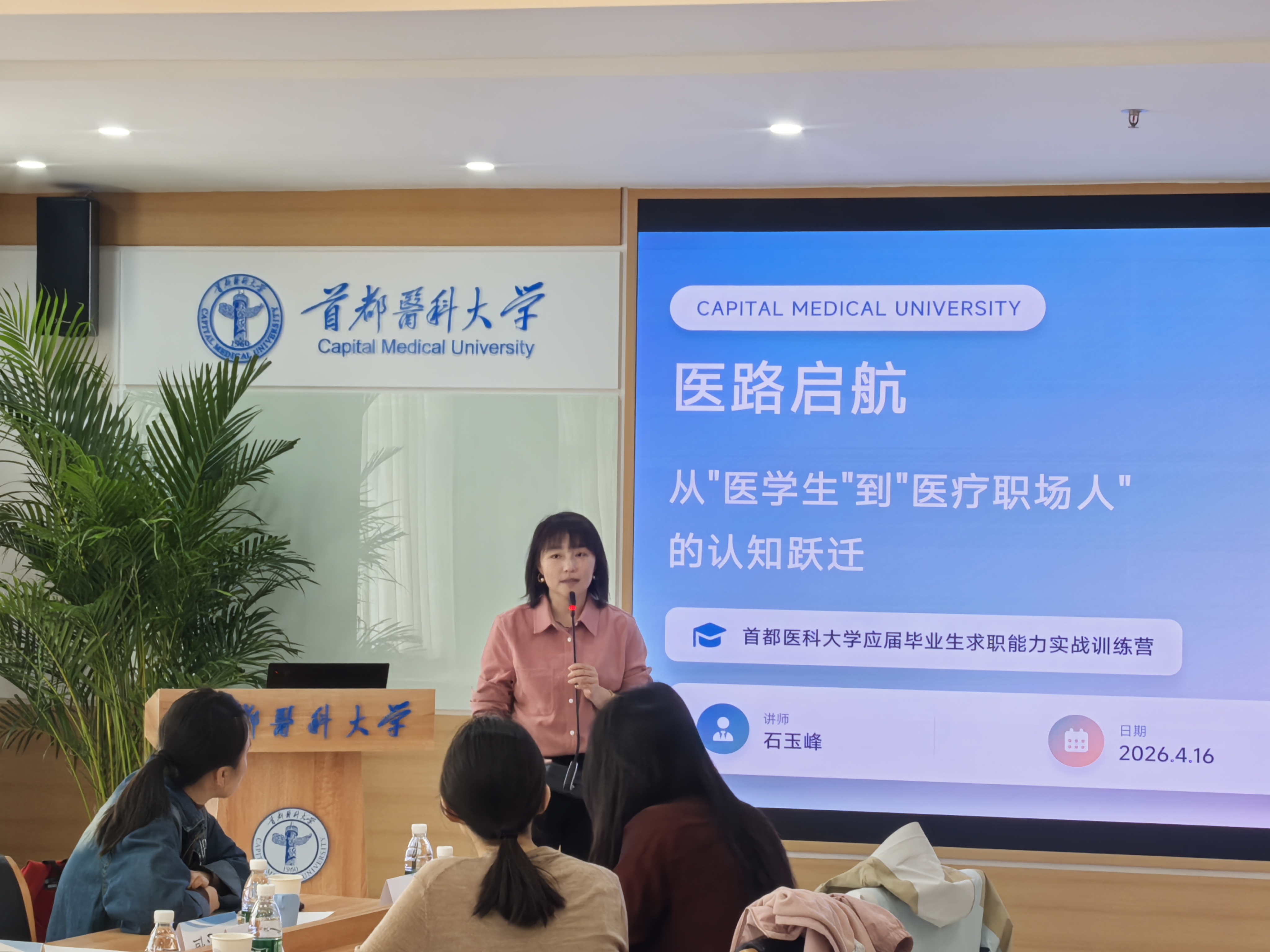 活动首日,首医大校园实训营课程紧扣医学专业特色,从医学生最关心的择业困惑切入。“面对‘使命感与高收入’的抉择、‘临床与产业’的方向选择,大家不必纠结,要学会在行业需求与个人价值间找到平衡点。”医疗行业专家的开篇分享,引导学生科学梳理自我定位、明确职业价值取向。