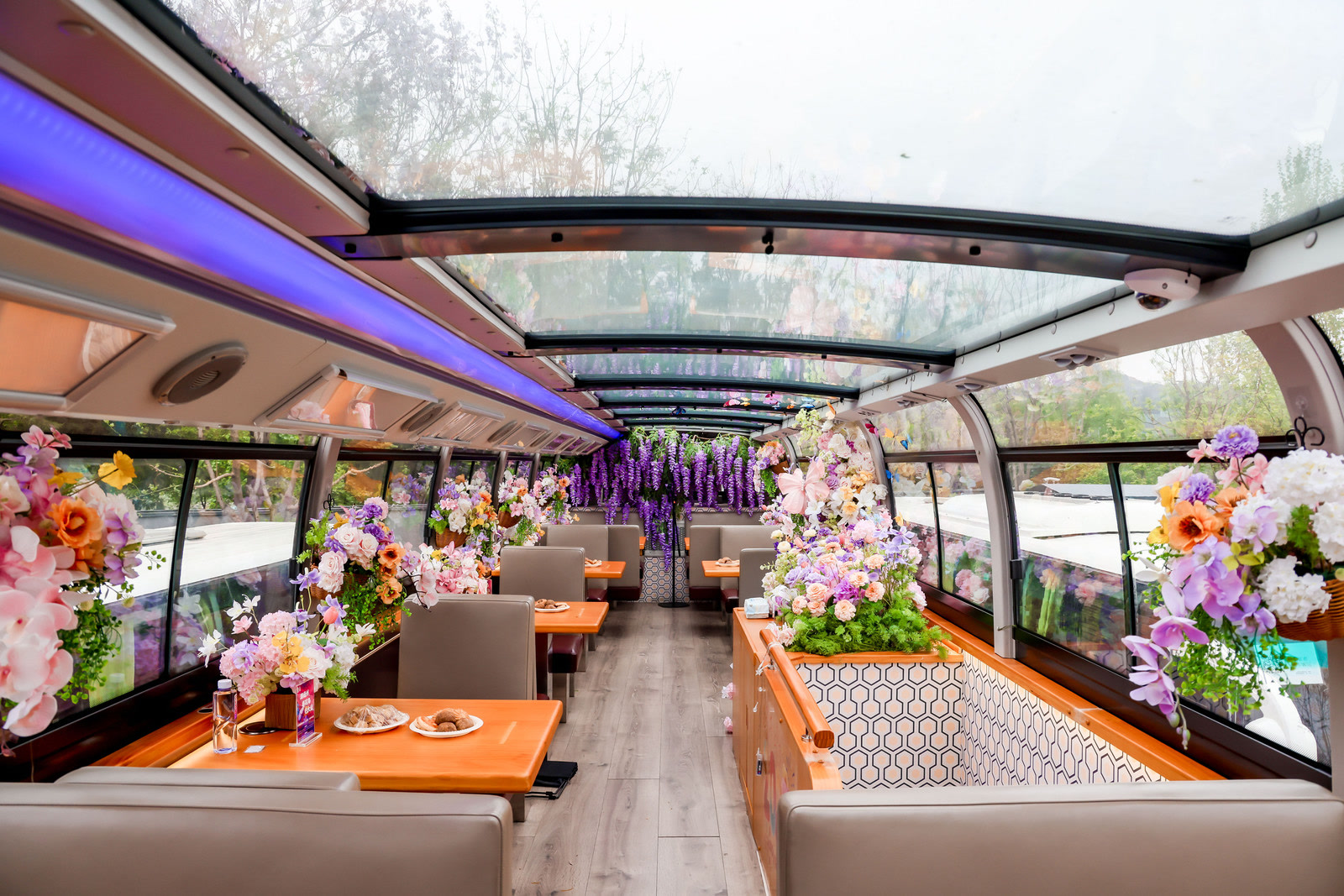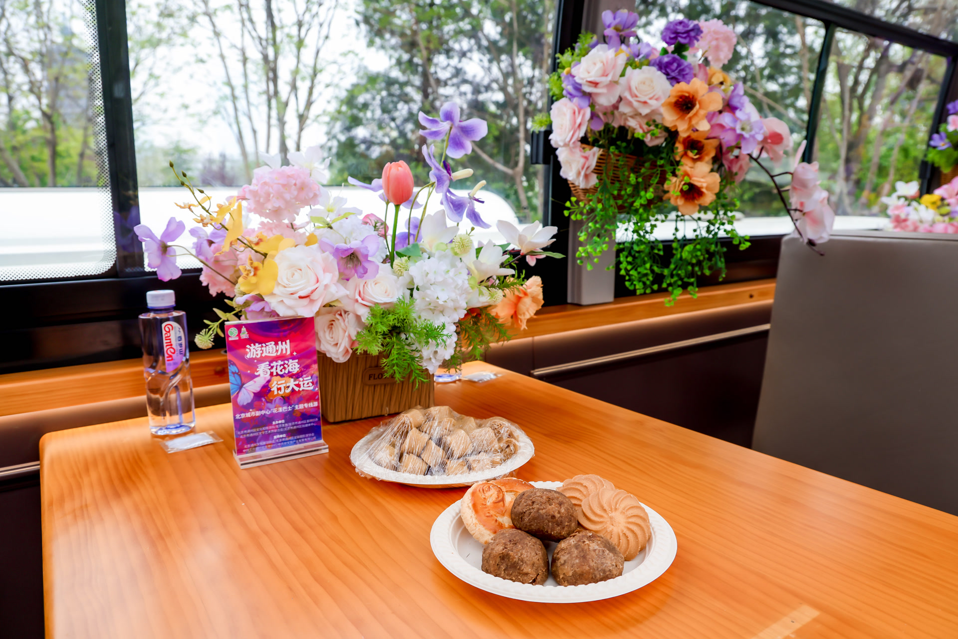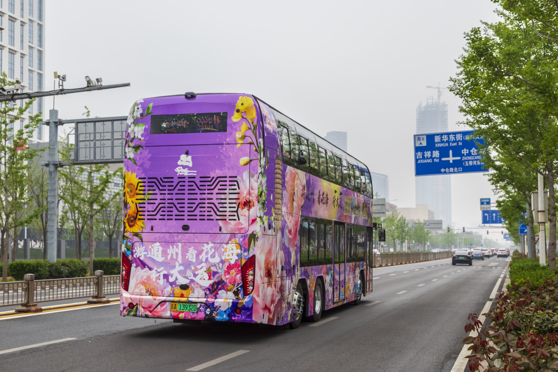 据通州区文化和旅游局相关负责人介绍,“花漾巴士”车身以通州春天的繁花与地标为创作基底,撷取历届“大运河春花儿”影像作品的精华积淀与艺术提炼,将燃灯塔影、三大文化设施和两岸繁花凝练成专属视觉符号。这些承载着城市文脉与春日诗意的元素,交织晕染、层层铺陈,共同塑造出花漾巴士绚丽灵动、意蕴悠长的外观景致,让每一寸车身都成为流动的运河春日画卷。