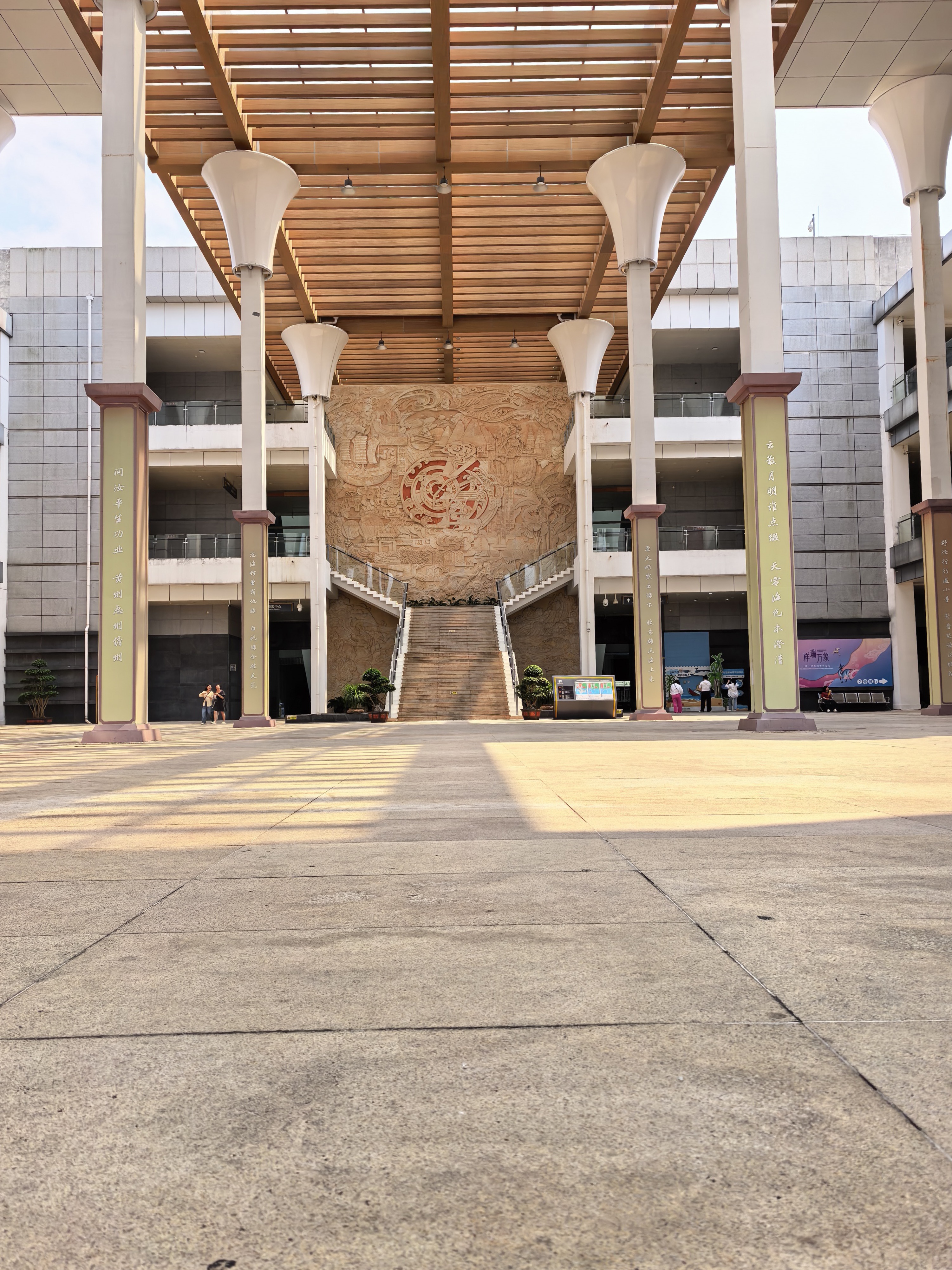 进入大厅,迎面便是一面巨幅浮雕,海南历史的要紧人物与景象都浓缩在上面了。苏东坡的“海南万里真吾乡”,丘濬的“五峰如指翠相连”,黄道婆的“衣被天下”,都栩栩如生。大厅的顶部是玻璃天井,超高透亮,可观天色,名曰“天容厅”;旁边的艺术走廊常办书画展,名曰“海色轩”。这名字取得好,是从东坡“天容海色本澄清”化出来的,既有文气,又应了此地的景致。