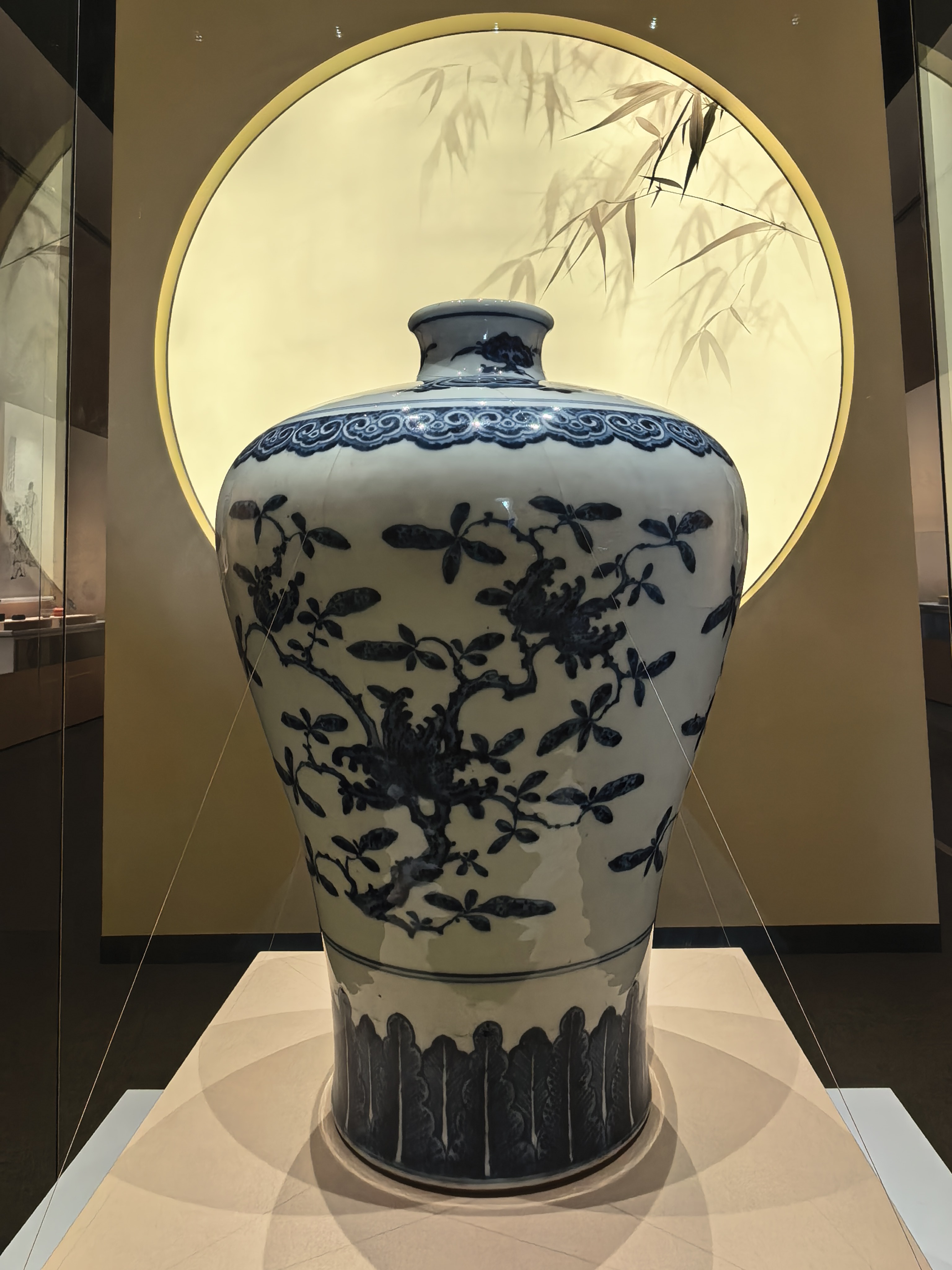 我来的这天,正赶上“祥瑞万象——一纹一世界的中华文化”展。展览专讲中国传统纹饰,从原始陶器上的蛙纹、水波纹讲起,一直到明清瓷器上的龙凤、八仙,洋洋大观。有一件明代的青花天马纹碗,是从南海沉船中打捞出来的,碗心绘着一匹天马,四蹄腾空,在祥云与缠枝花卉之间飞驰。这只碗在海底沉睡了几百年,身上还附着珊瑚的痕迹,却依然光彩照人。它让我想起海上丝绸之路的繁华与凶险,想起那些远航的商人,想起海南作为南海门户的千年历史。