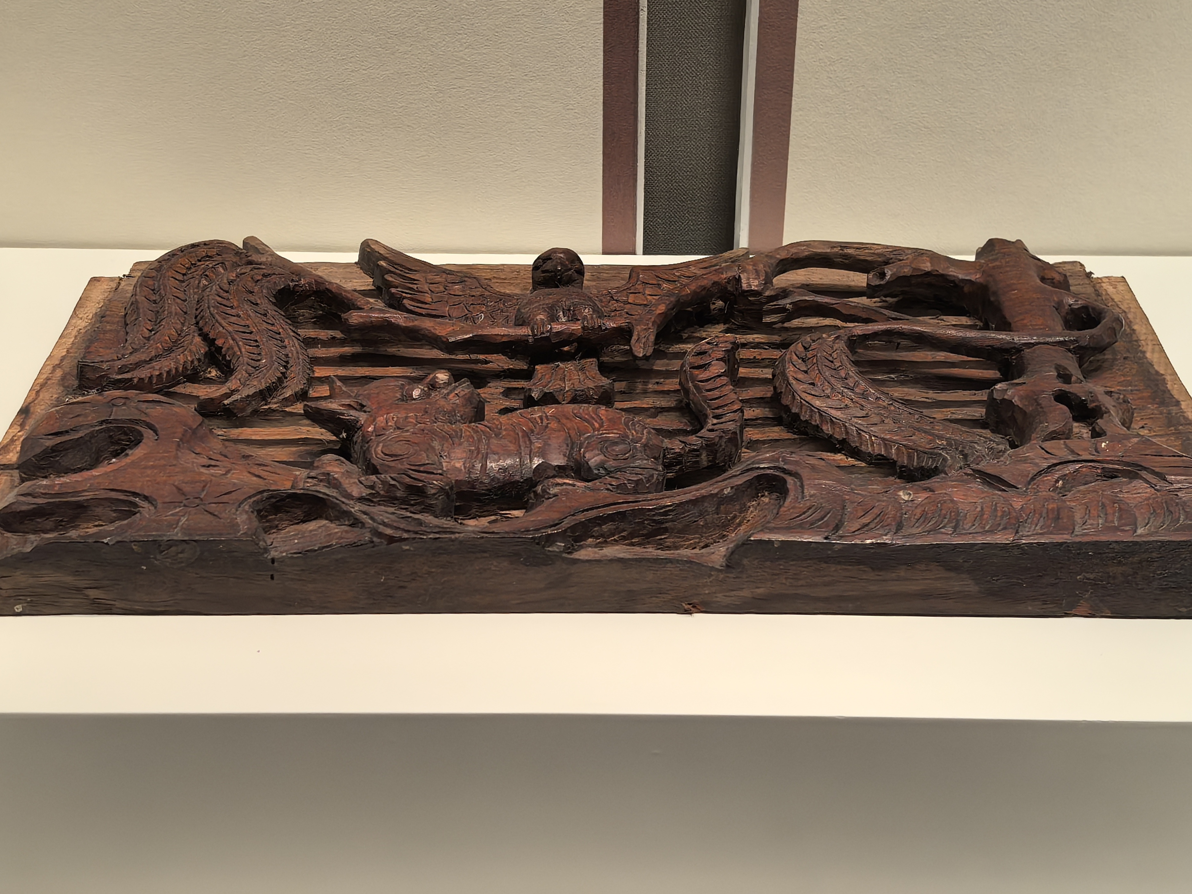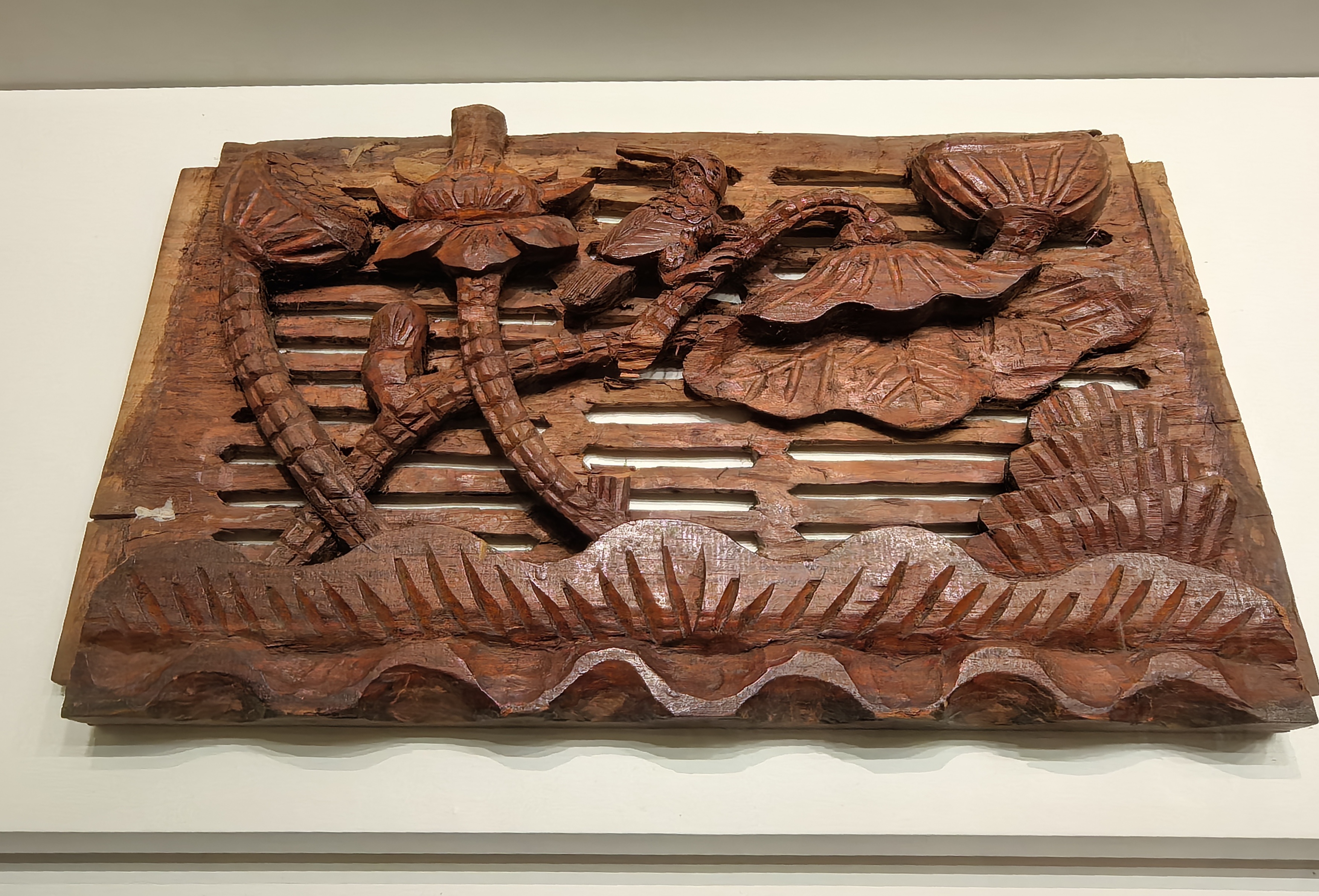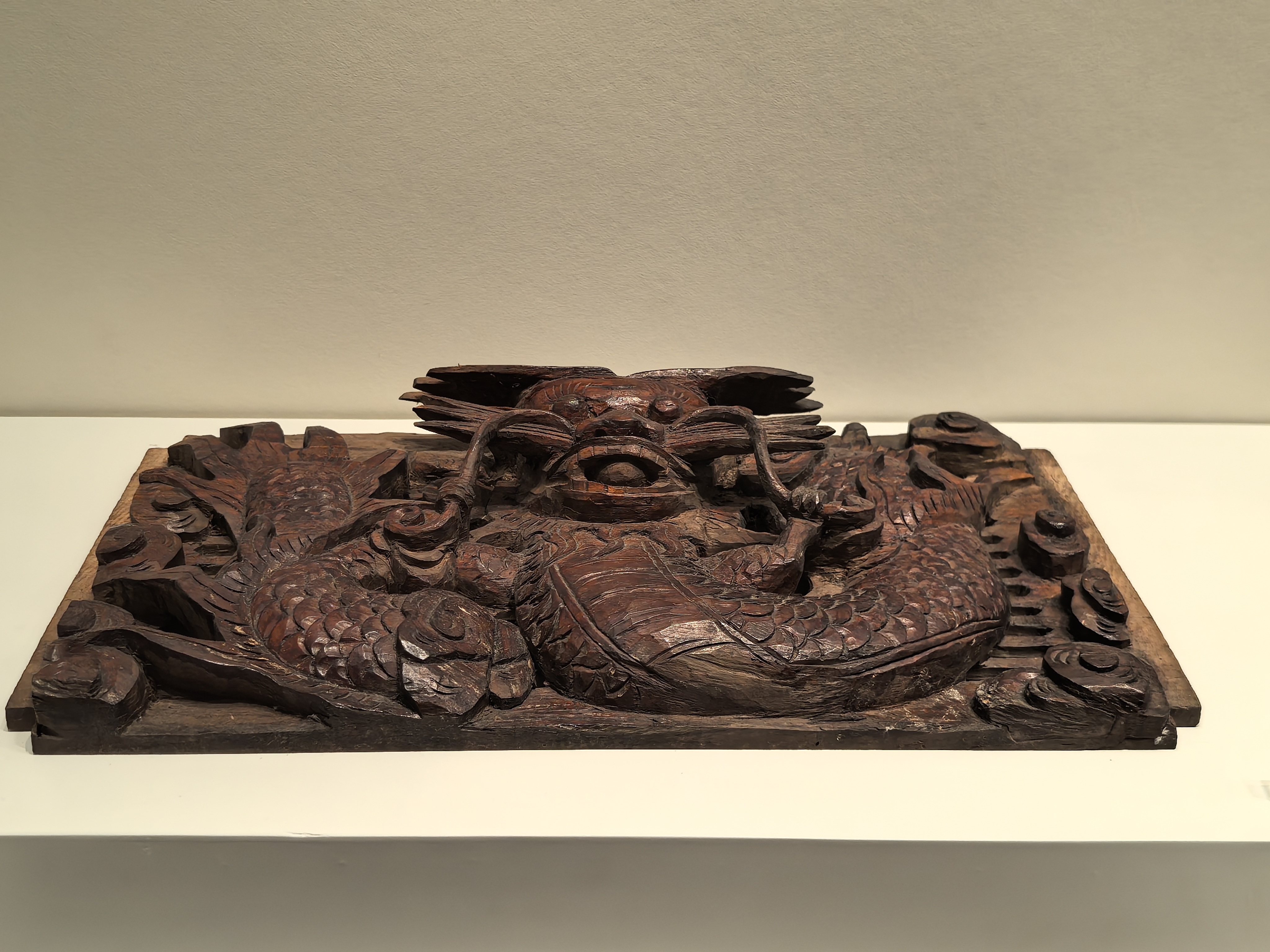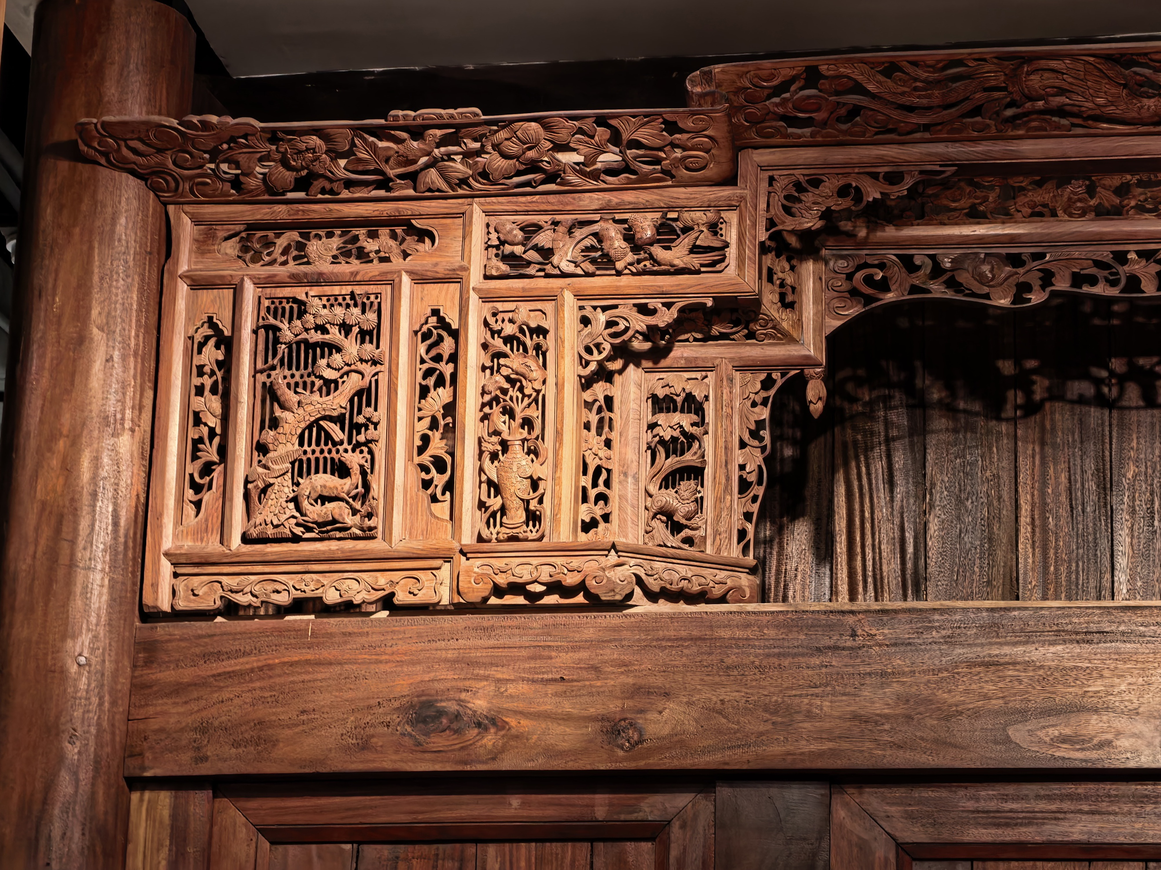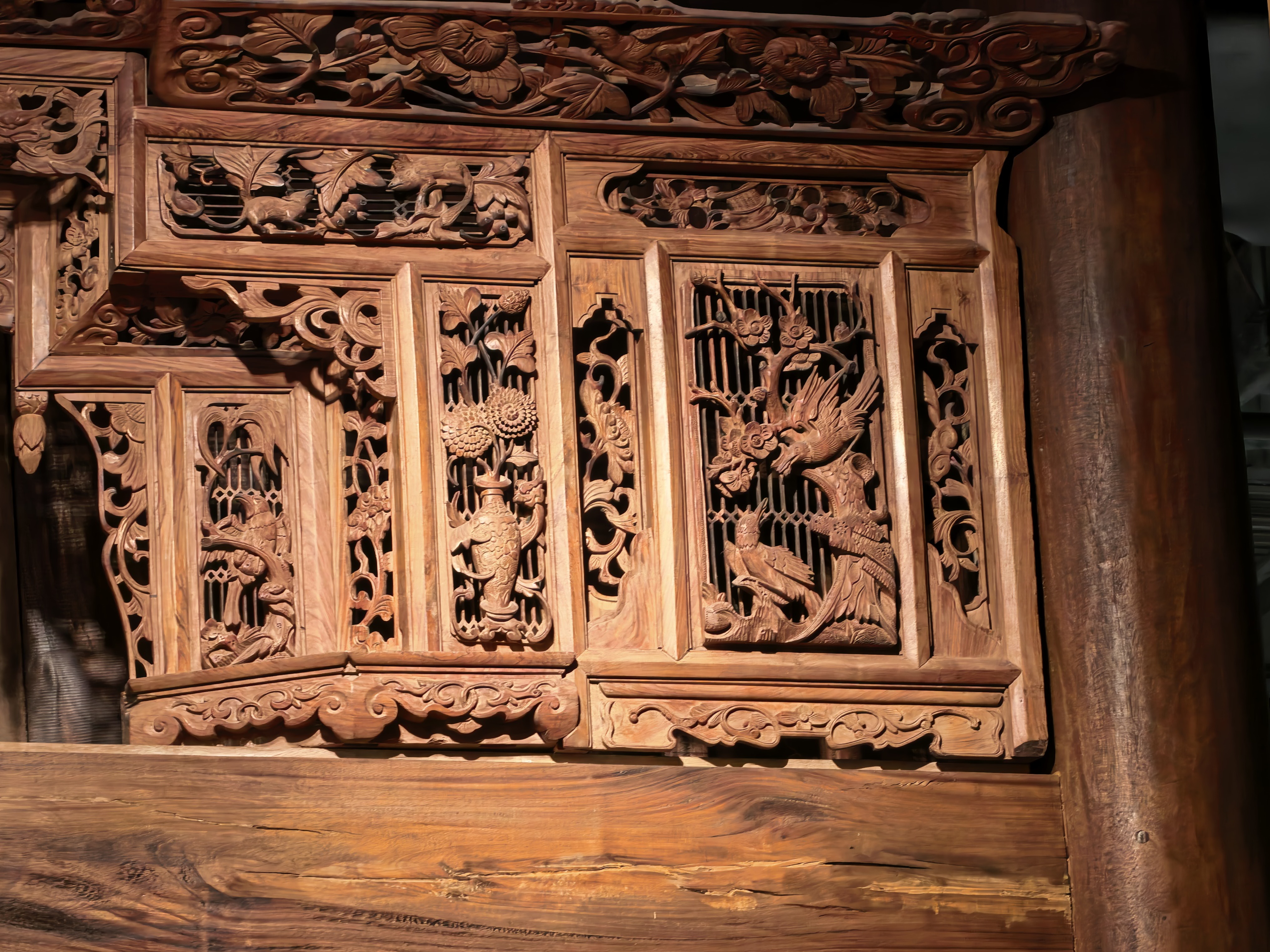 展厅中最引人注目的,当属清代黄花梨公阁楣——这件十大“镇馆之宝”之一的重器。