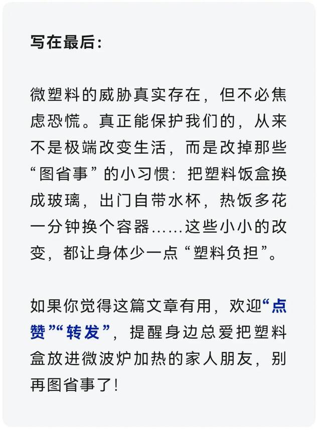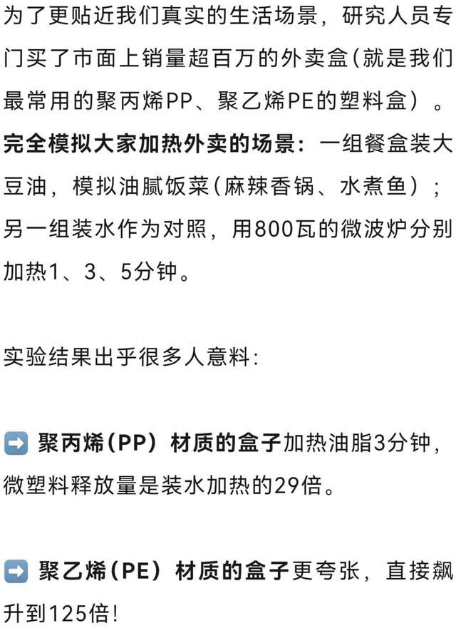 这不是在省事,这是在给自己“吃塑料”。近日,浙江大学一项最新研究指出,这样用微波炉加热塑料盒,其释放出的微塑料数量,直接飙升到正常情况下的125倍,相当于在给自己“下毒”。