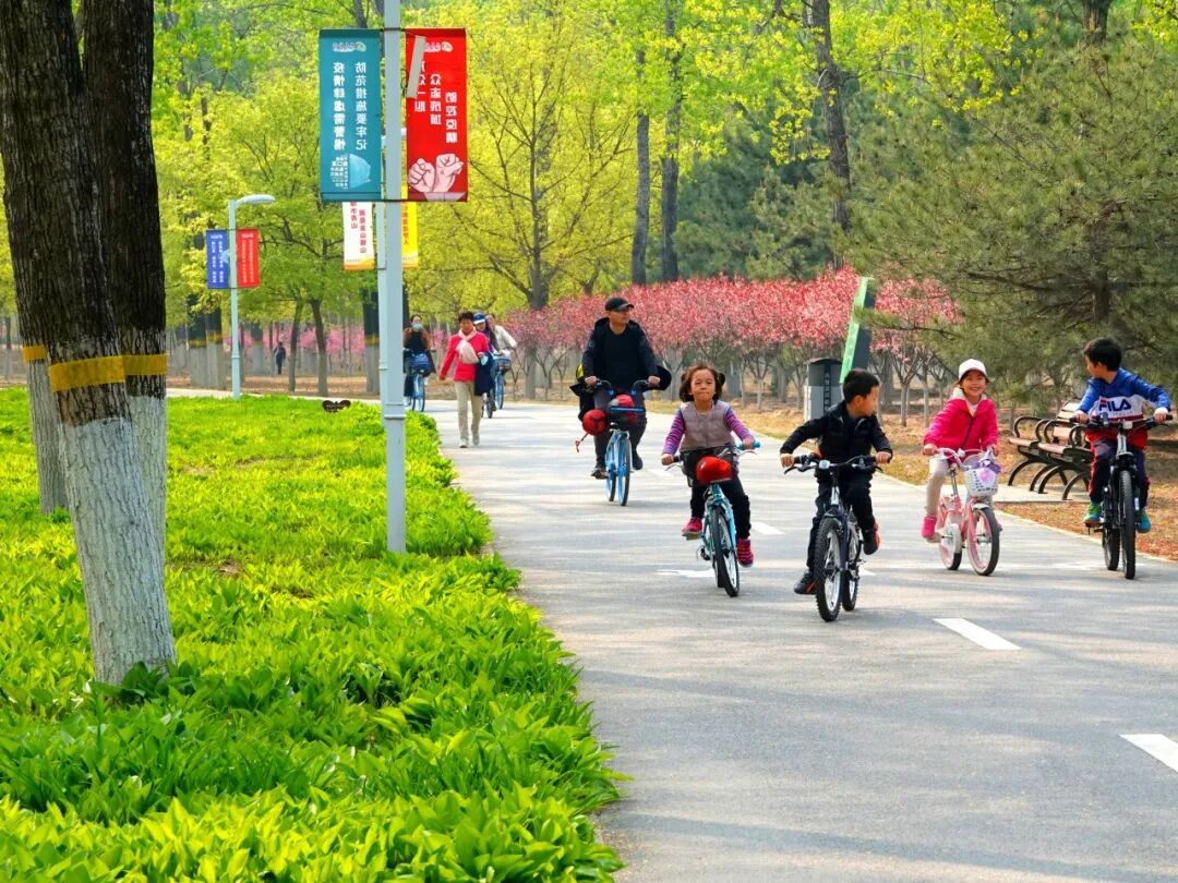 任务描述:在顺义奥林匹克水上公园或共青滨河森林公园绿道,和孩子一起跑步、骑行,在清新空气中尽情运动,享受亲子游玩的快乐。
