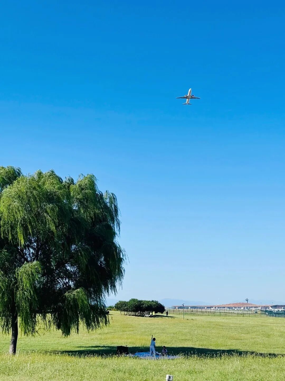 任务描述:在西湖园的大草坪上,和孩子一起追逐掠过天空的飞机,定格这一瞬间,记录属于春天的自由与欢乐。