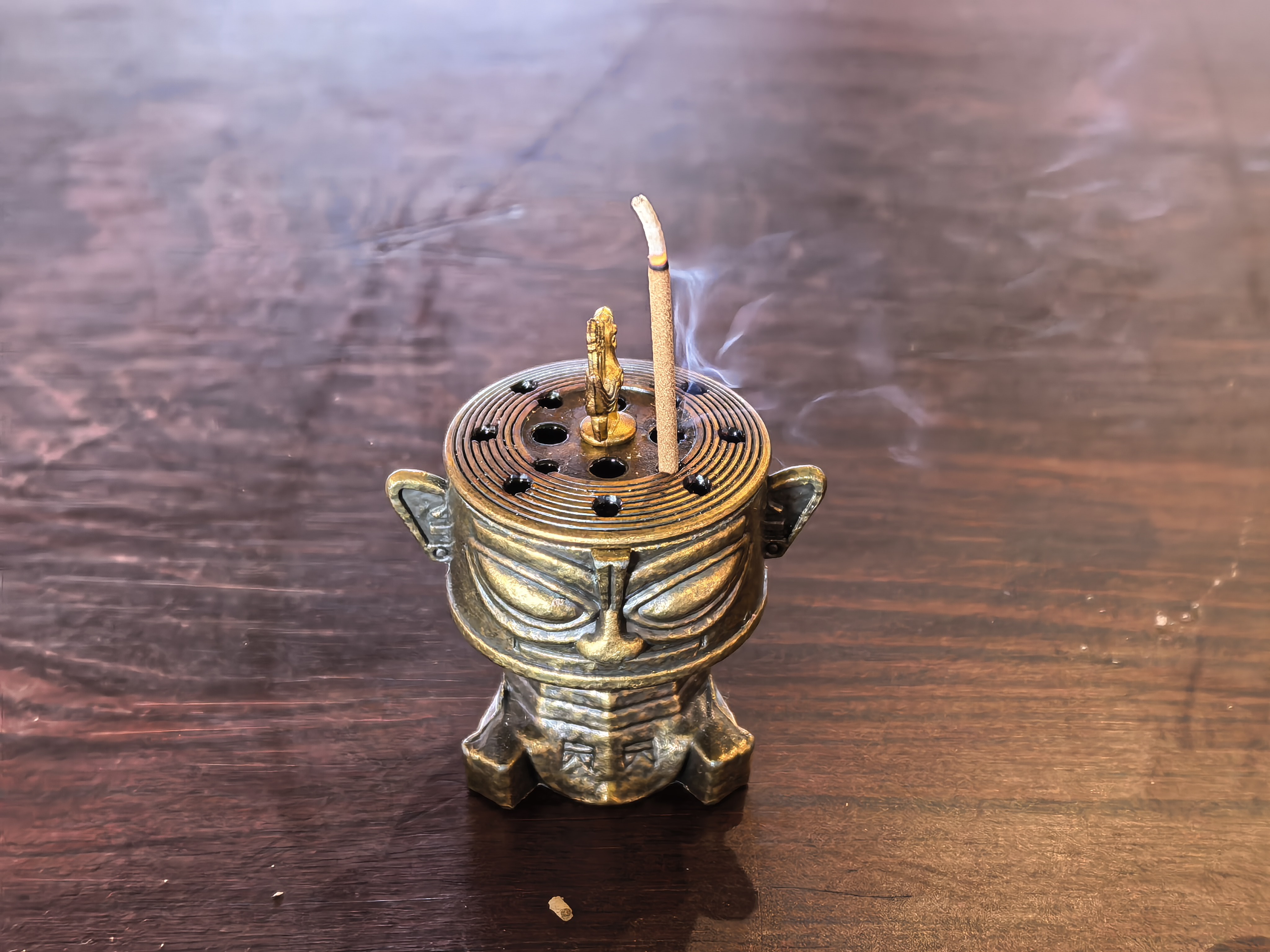 我屏住呼吸,生怕惊动了它。那线香越伸越长,匀匀的,直直的,不断也不弯。我忘了自己是在做香,只觉得有什么东西正从这铁筒里、从这团泥里、从我的手心里,安安静静地生发出来,一寸又一寸,像是时间本身被挤成了有形有质的样子。