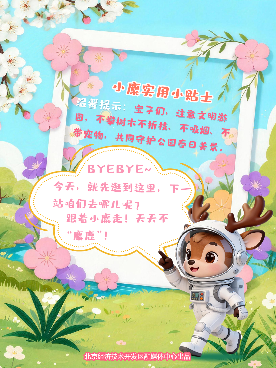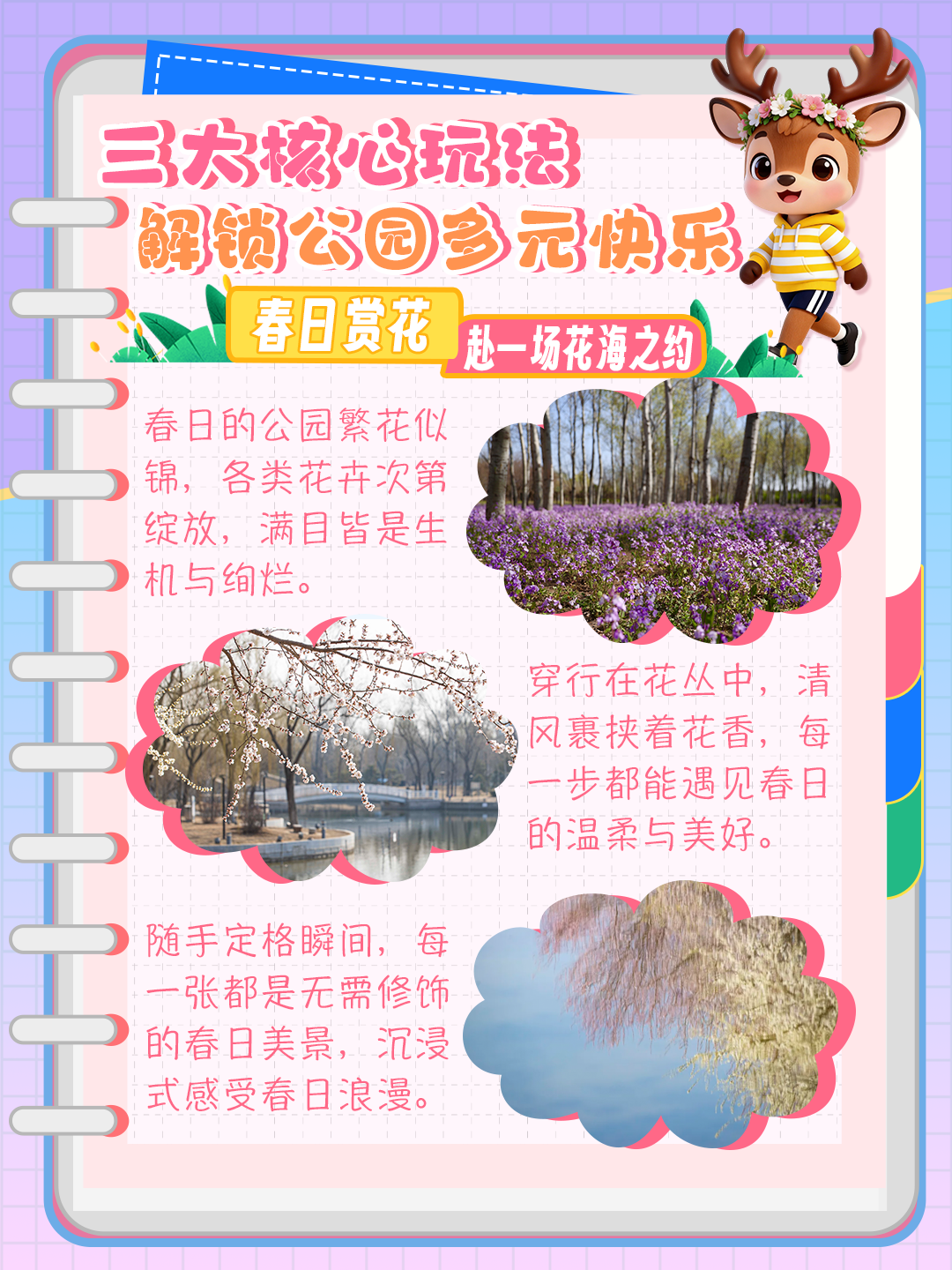 文明游园:不攀折花枝、不踩踏草坪,让美景更长久。