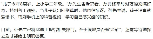 8岁男孩发现“金矿”