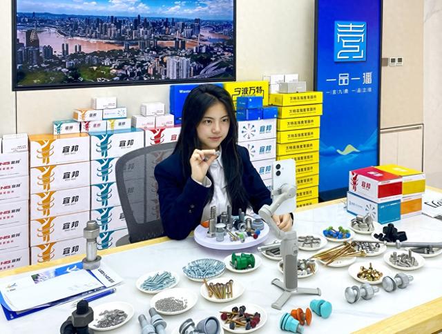 4月16日,宜邦机械科技(邯郸市)有限公司主播正在讲解紧固件产品。受访企业供图