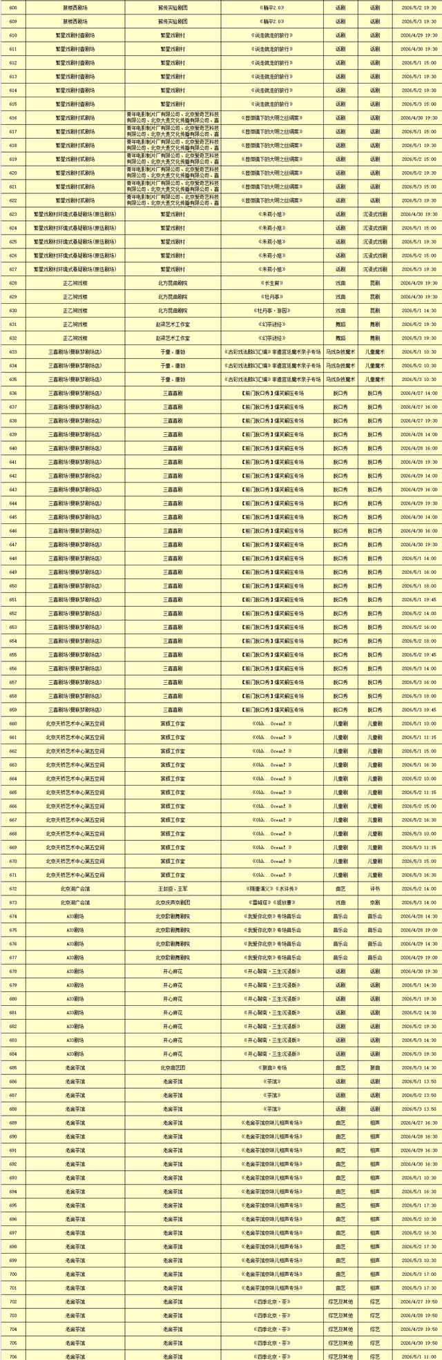 2026年4月27日—2026年5月3日北京商业演出信息新鲜“出炉”!话剧、喜剧、京剧、昆曲、北京曲剧、音乐剧、儿童舞台剧、儿童亲子剧、儿童木偶剧、儿童音乐剧、儿童剧、儿童魔术剧、儿童杂技、沉浸式戏剧、沉浸式喜剧、音乐会、演唱会、Livehouse、芭蕾舞剧、相声、评书、鼓曲、曲艺、二人转、脱口秀、综艺、杂技等一大波精彩演出来了,你想看的全都有,安排起来!(演出信息可能发生变化,以实际演出情况为准)