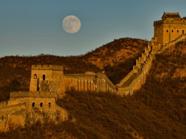 河北滦平:金山岭长城上空“超级月亮”闪亮登场